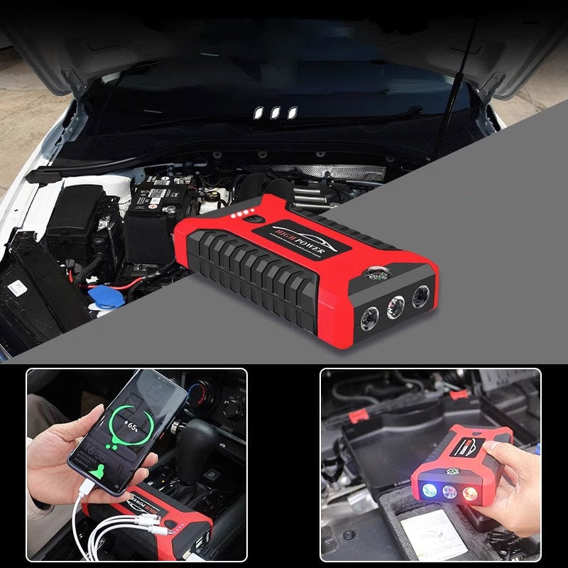 【More than car jump starter】: The emergency starter battery pack can also be used as a power bank, has four USB ports. The 400 lumen built-in LED light with 3 modes: Flashlight, Strobe, and SOS, which is helpful in the dark or in emergency.