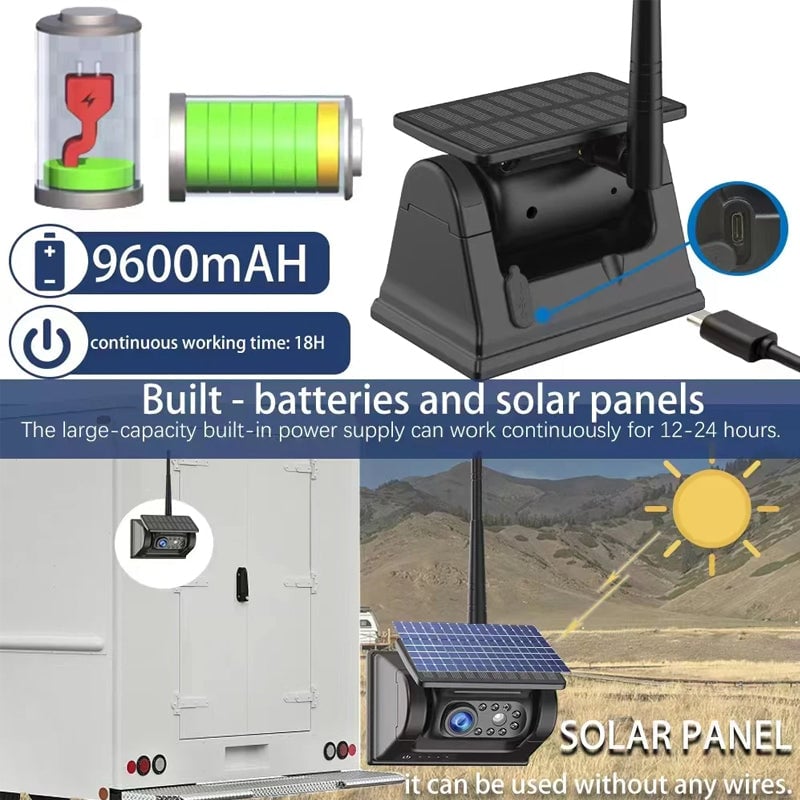 Powerful Solar Wireless Charging: Built-in 9600mAh high-capacity battery with efficient solar panel, supports simultaneous charging and use, charges during the day and operates continuously at night for up to 48 hours.
