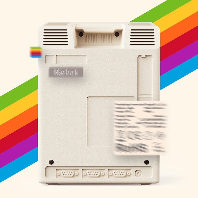 Includes a physical knob under the body to adjust screen brightness — restoring the tactile interaction of early computer controls.