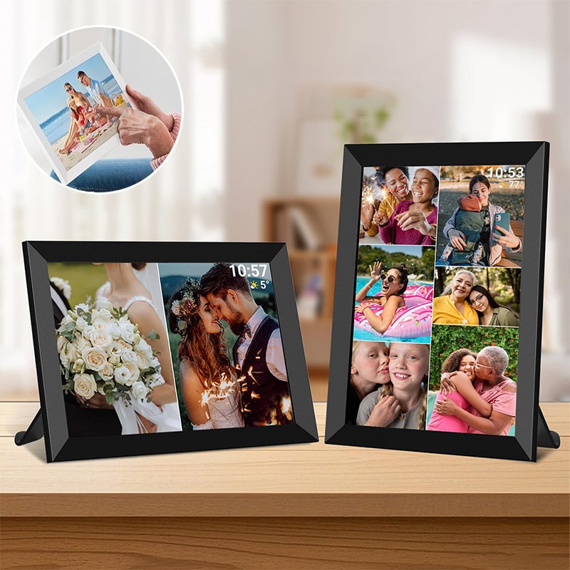 Easy Touchscreen Operation: Features a responsive touch panel for quick setup and photo management, with auto-rotation for both portrait and landscape display.
