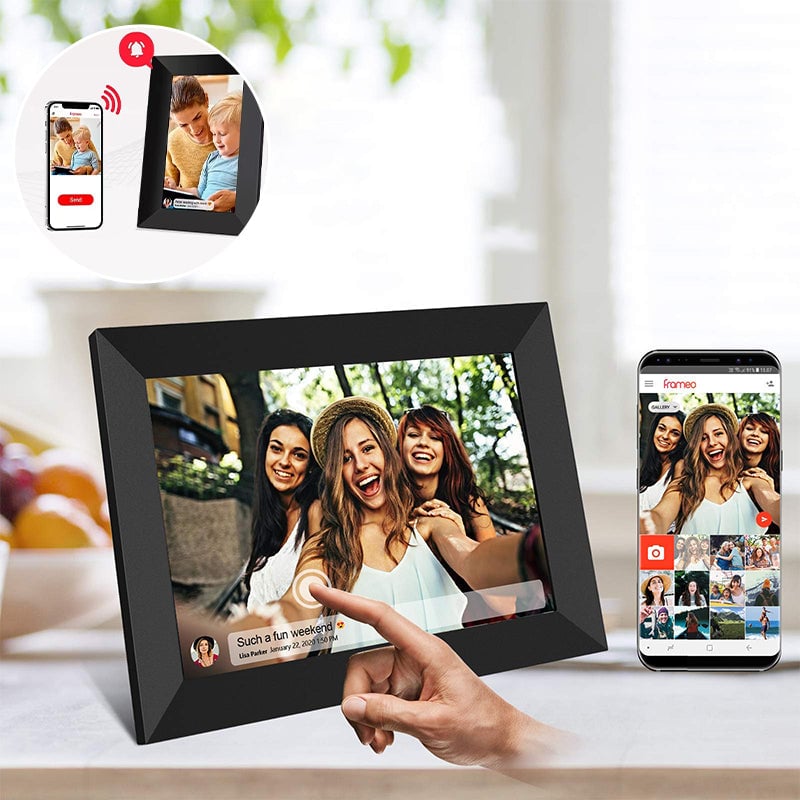 Smart Cloud Photo Frame: Supports photo and video playback with built-in 16GB storage, WiFi connectivity, and easy touch-screen controls for seamless viewing.