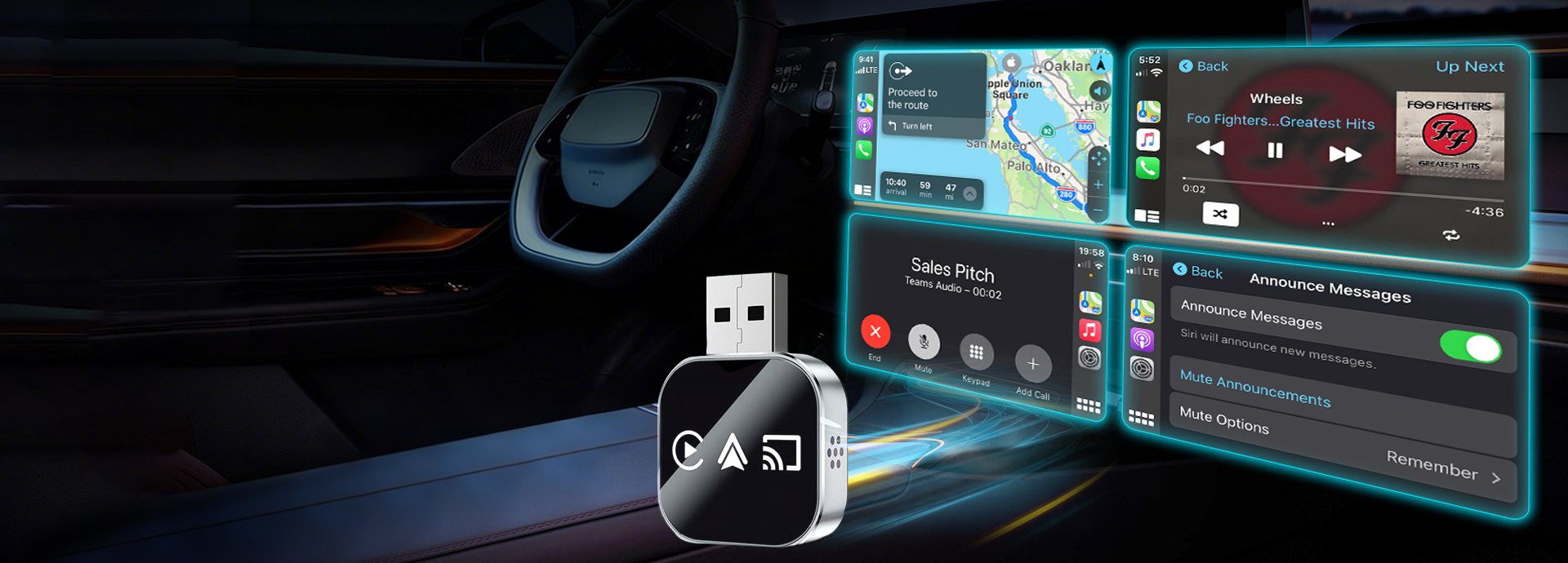 Upgrade your car to wireless CarPlay and Android Auto with Bluetooth 5.0 and 5G WiFi — all in one compact adapter.